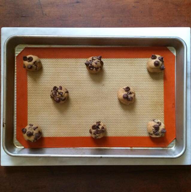 Preheat oven to 350F. Line two baking sheets with parchment. Scoop dough by the tablespoon and roll into balls, setting them two inches apart on the prepared pans. Bake 8-10 minutes until they look just a touch underdone. Let cool on the sheet pans for five minutes before transferring to a cooling rack to cool completely.