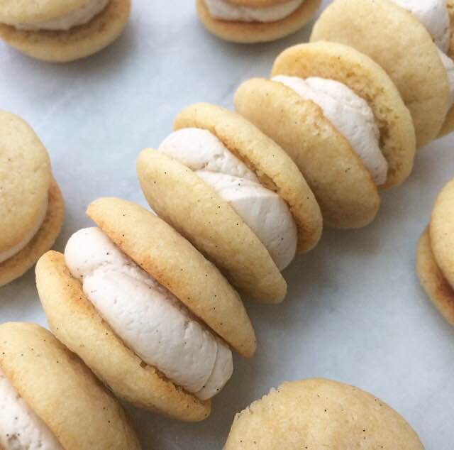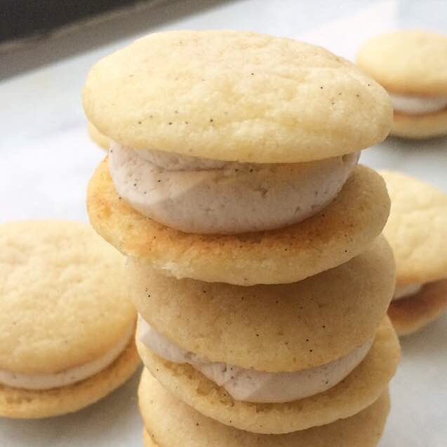 Vanilla Bean Sandwich Cookies keep well in an airtight container at room temperature for up to a week.