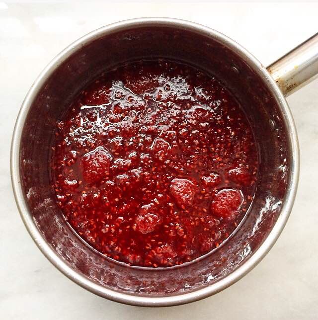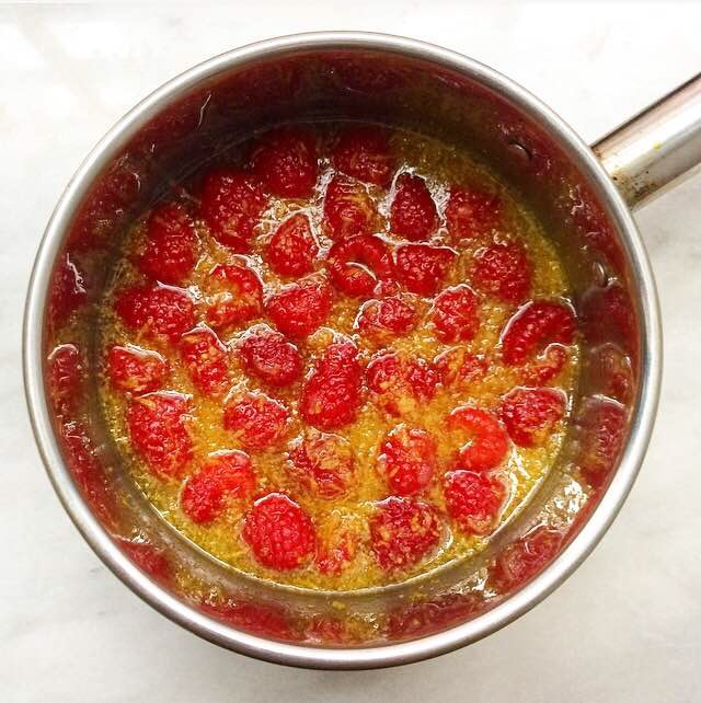 Make the syrup. In a small saucepan, combine sugar, raspberries, lemon zest, and water. Cook over medium heat for 10-12 minutes, stirring occasionally, until berries are starting to fall apart. Let cool 30 minutes before pushing through a fine mesh sieve to remove seeds and pith.