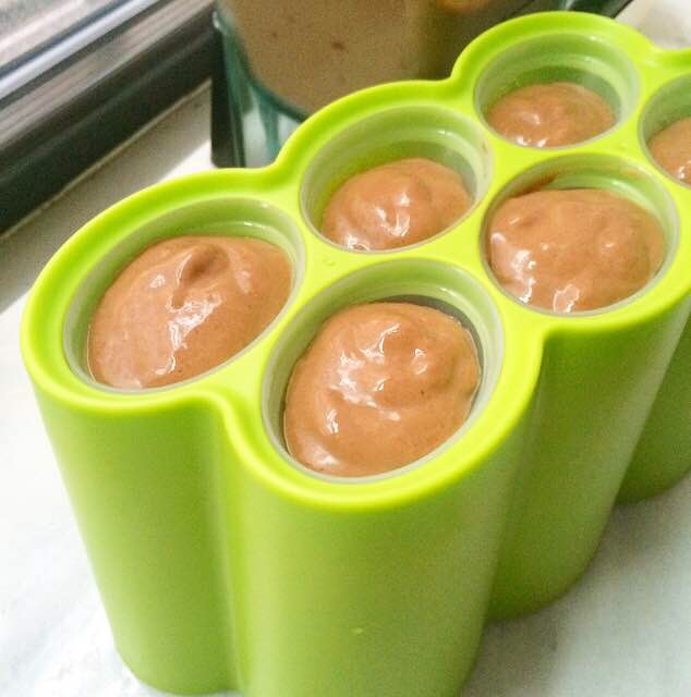 How does that work? It’s simple, really. Coconut milk and avocado keep them creamy. Dates make them sweet. Fresh raspberries and cocoa powder make them delicious! Add to that a bit of vanilla and a few cups of ice cubes and blend until smooth. Pour the mixture into ice pop molds, add popsicle sticks, and freeze for several hours.