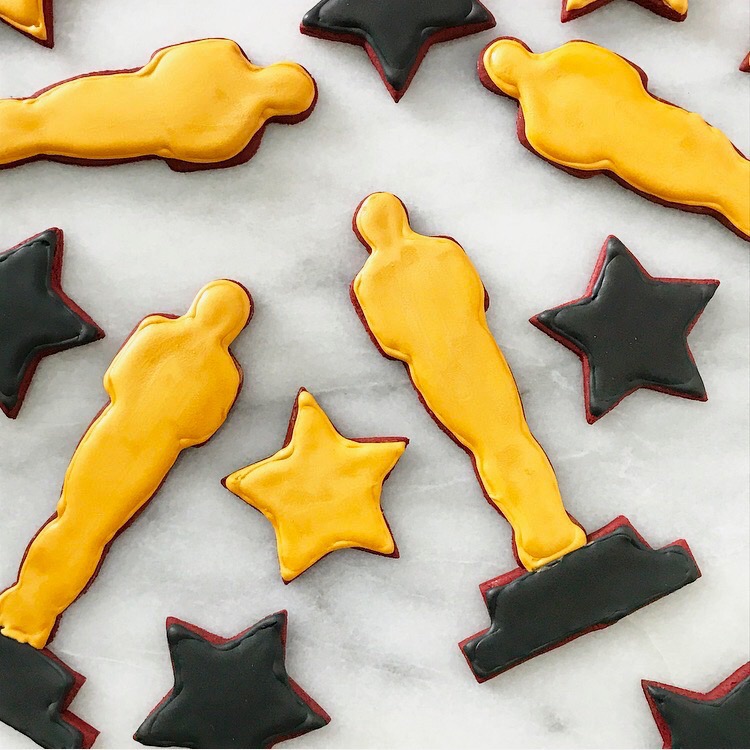 The cookie dough is easy to roll and cut, and the cookies won’t spread as they bake. That’s right–once your cookies are cut into cute shapes and placed in the oven, you won’t have to worry about them warping. It’s the dream. I love that my little Oscars (made with a mummy cutter and some strips of dough) actually look like their namesake statuettes!