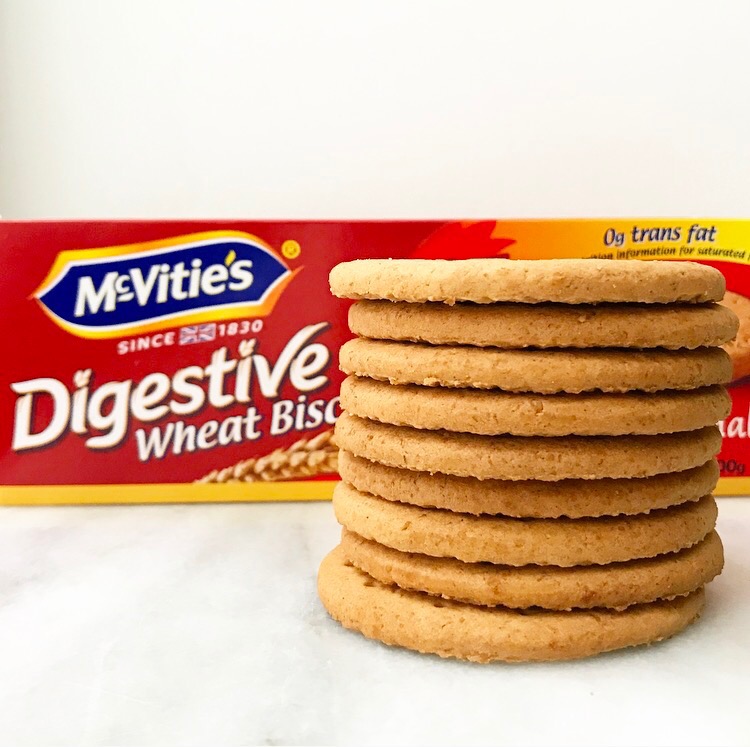 If you cannot find digestive biscuits in the cookie or international aisles of your grocery store, crisp butter cookies or graham crackers will work here.
