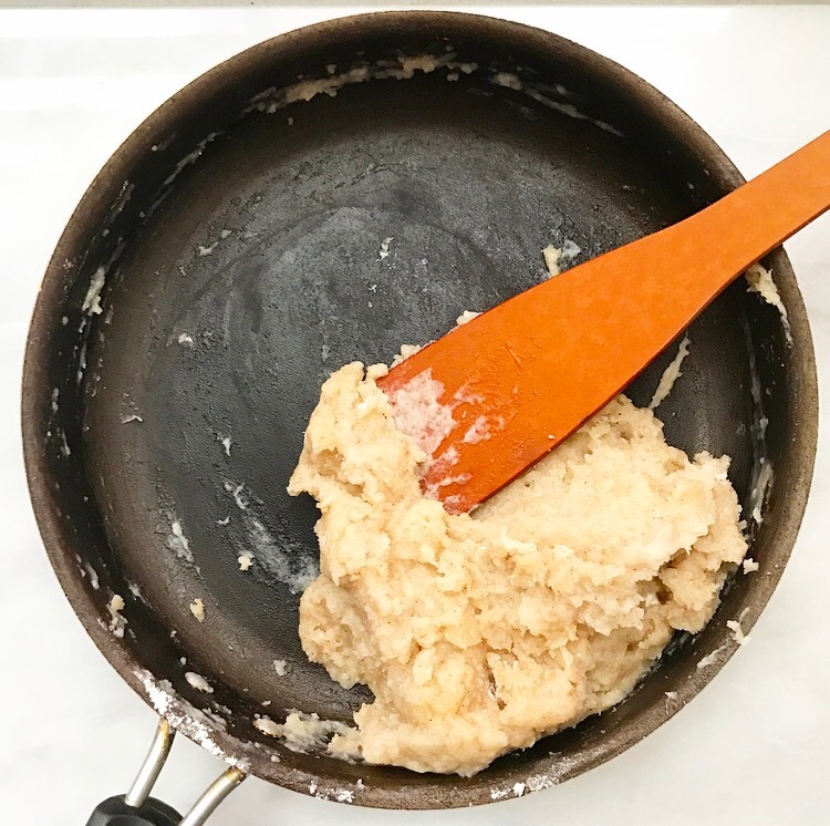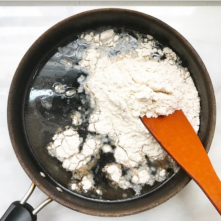 Unlike yeast-raised and cake doughnuts, churros don’t require any long processes or temperamental leaveners. Nope. This dough requires minimal ingredients (and is accidentally vegan!) and comes together in about five minutes on your stovetop. Just heat some water, oil, sugar, and salt until it comes to a boil. Remove the mixture from the heat and stir in some flour and a bit of cinnamon. And then forget about it for fifteen minutes. The soft dough will initially be very warm, so you’ll need to step away so it can cool to a temperature you can handle.