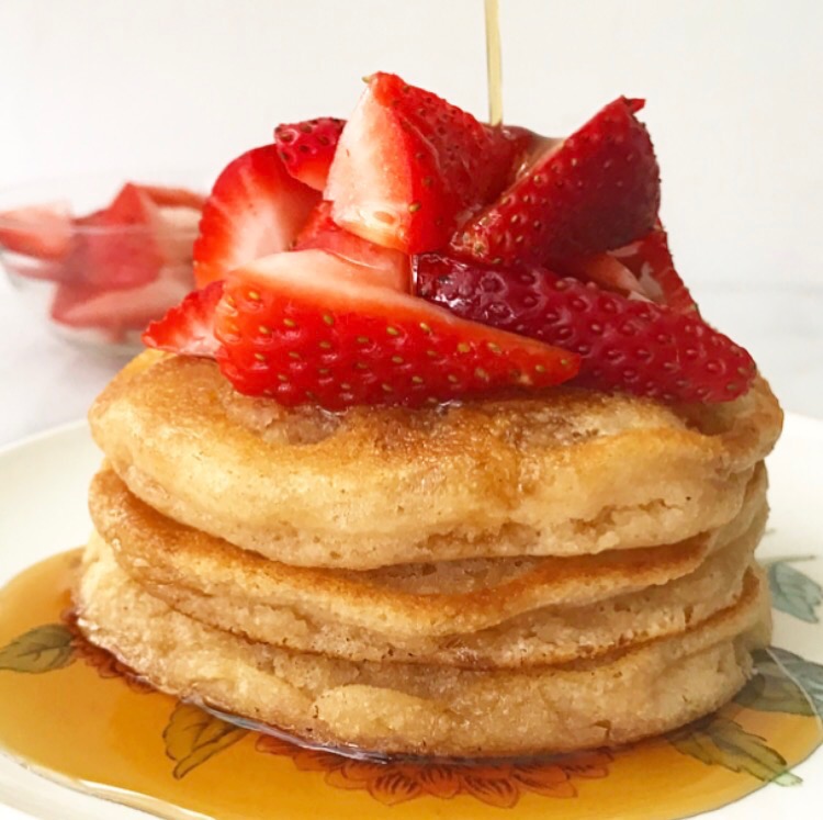 Where most pancake recipes make enough for an army…er, family of four…the now-two pancake recipes on this blog make just enough for one person. That’s right! This recipe makes just three pancakes: enough to kick my craving without a ton of leftovers to crowd my already-packed freezer.