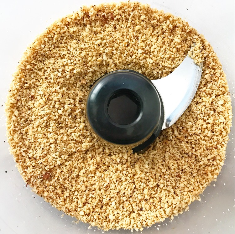 Transfer hazelnuts to the bowl of a food processor. Pulse until a fine meal forms. Set aside.