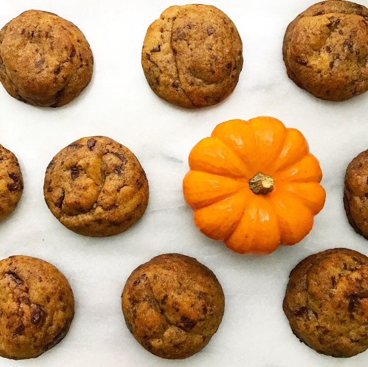 Pumpkin Chocolate Chunk Cookies {Vegan}While reorganizing my Recipe Index last week, I was astonished at the lack of vegan pumpkin recipes in my repertoire. Besides being a delicious vehicle for warm autumnal spices, pumpkin is an excellent egg replacer–something about the water content and fibrous innards, I suppose. All I know is that if you use 1/4 cup of the stuff in place of each large egg in a cookie recipe (and add a little pumpkin pie spice), you’ll likely escape the cakey cookie problem that plagues so many home bakers this time of year. And if you substitute melted coconut oil for the usual butter…well, you might suddenly have a lot of vegan friends asking about Pumpkin Chocolate Chunk Cookies. Not that I’d know anything about that 😊