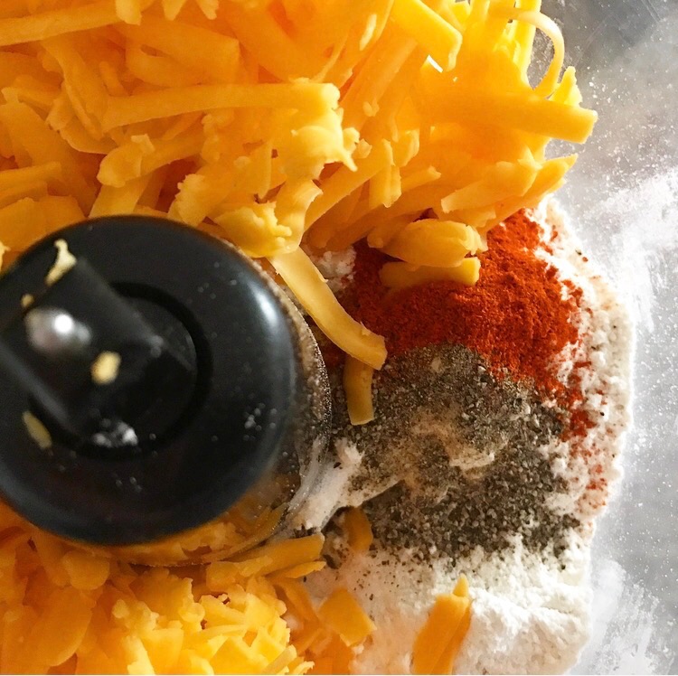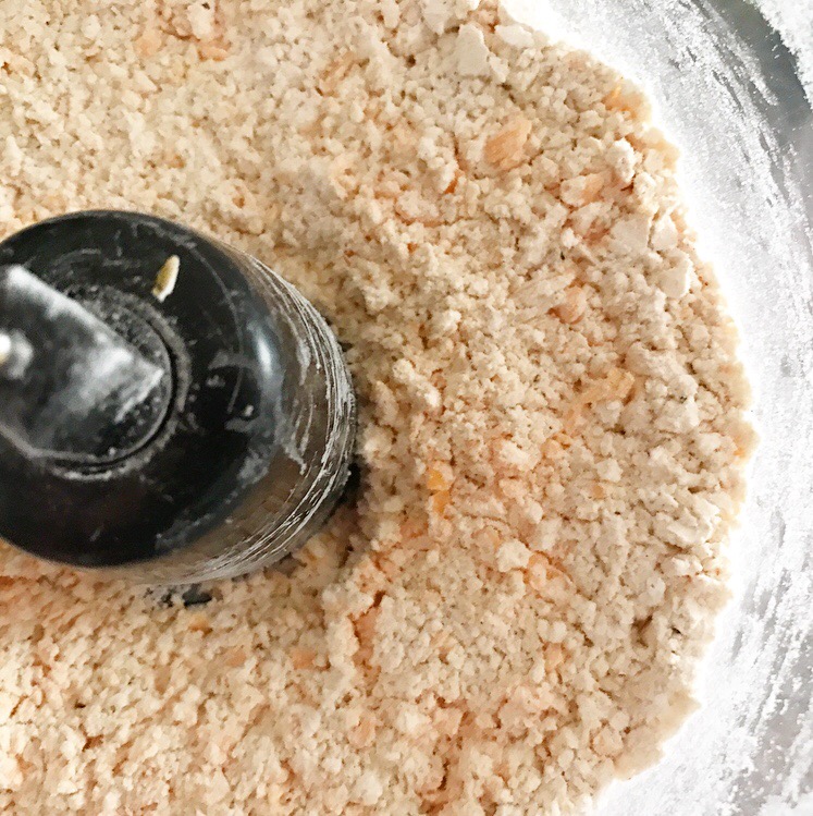 This dough really couldn’t be simpler. Start by grating half a pound of extra sharp cheddar cheese.