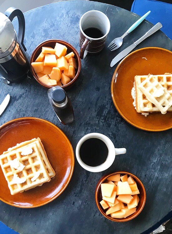 It’s impossible to be grouchy in the morning when VJ makes you gluten-free vegan waffles…