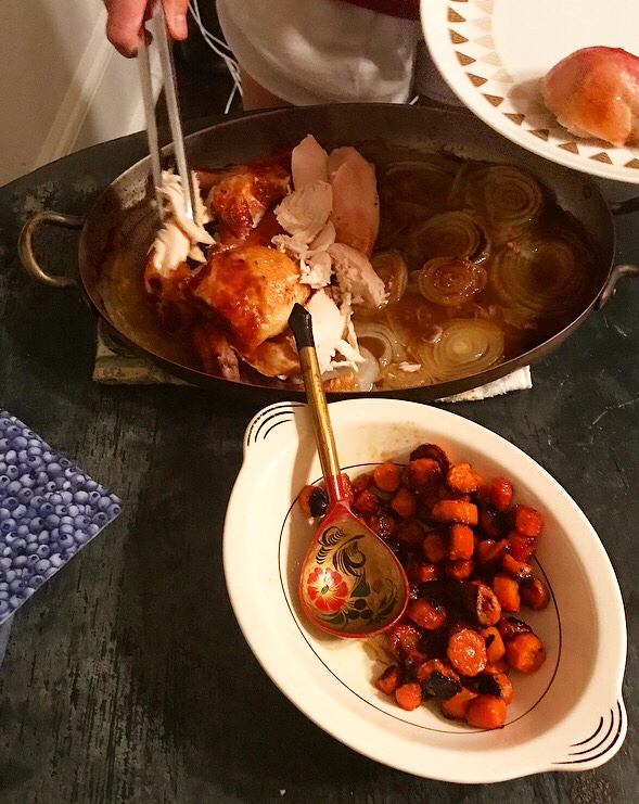 Dinner is an event though. We’ve had a Roast Chicken with Schmaltzy Onions, and some extra caramelly maple-roasted carrots.