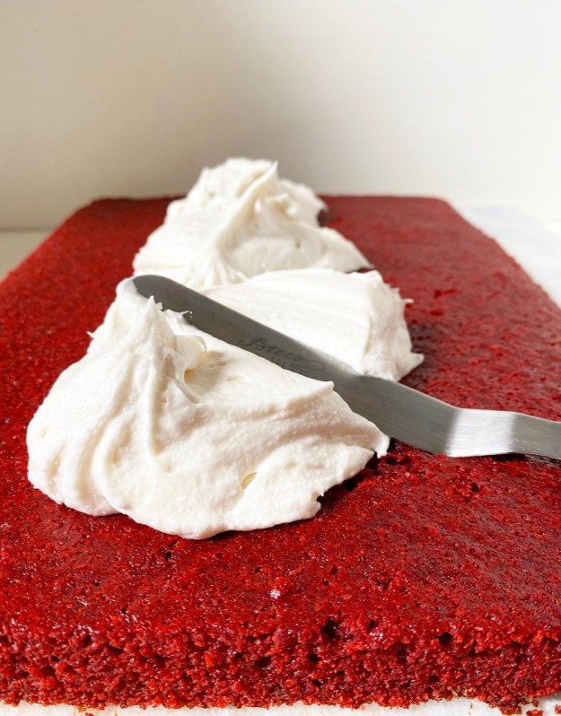 Use to frost the top of sheet cake. Frosting and frosted cake should be stored in the refrigerator; they will get very soft at room temperature.