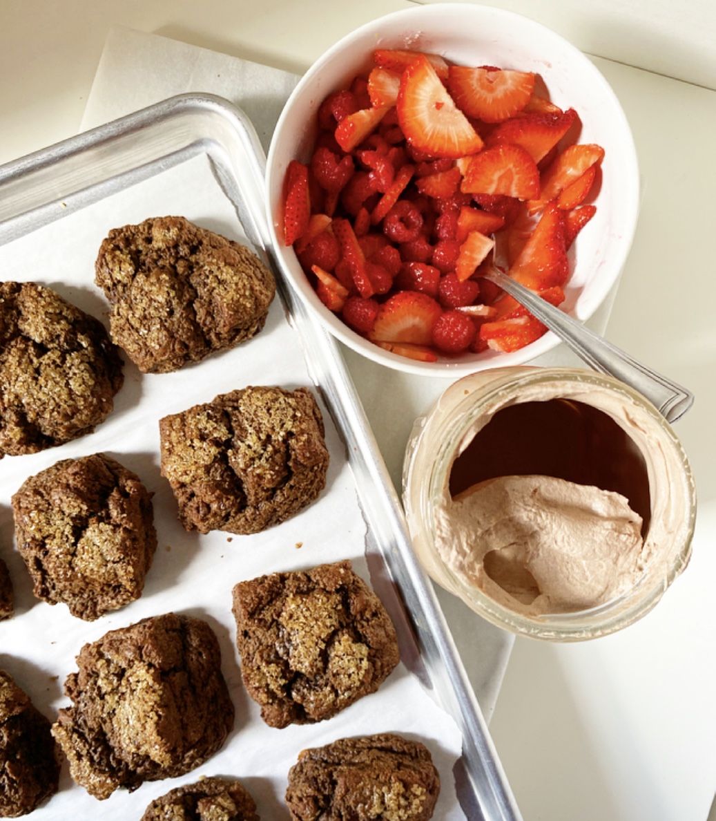 When the biscuits are cool and the berries are ready, make the chocolate whipped cream (recipe below).