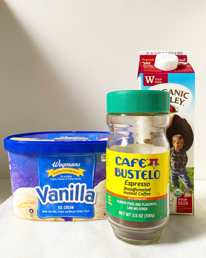 I suppose you could class these up by buying/using an espresso machine to pull shots or alternatively, going to a coffee shop, getting espresso to-go, coming home, letting it cool and then blitzing it with ice cream…but that seems like a lot of work for something that can be made just as well with some stuff in a jar and warm tap water. Plus, if you make these the easy way at home, I can guarantee you won’t have to listen to anyone’s ex-boyfriend’s terrible band for even a second.