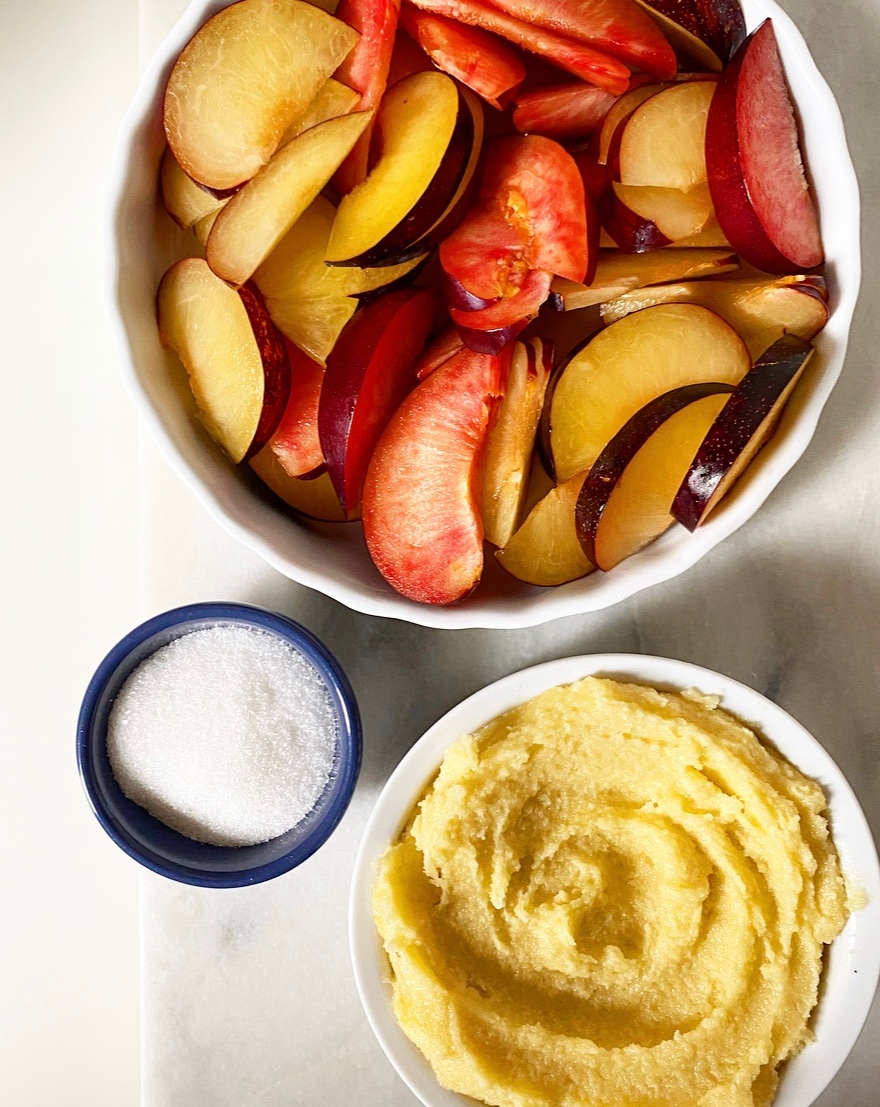 My train of thought is not hard to follow. As this is my third frangipane based dessert in three weeks, you can probably gather that I am on a bit of a frangipane kick right now. But it’s for good reason—frangipane is easy to blitz up in a food processor and works as a perfect foil to any number of summer fruits. I’m already thinking up some ways to incorporate it into my Thanksgiving pies, too!