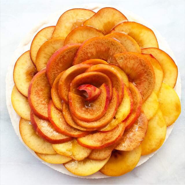 This Peachy Paleo Cheesecake is vegan, grain-free, and refined sugar-free, but is definitely still dessert. It’s sweet and creamy, with a nutty cinnamon-spiced date crust, and a topping of sliced late-summer peaches and a drizzle of maple syrup. It may not be anything like traditional cheesecake, but it is really delicious.