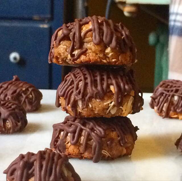 The flavor is everything you love about sweet, chewy, crunchy Almond Joys, but better because they’re homemade. Oh, and because they have a crispy layer of chocolate shortbread offsetting all their sweetness. After sinking your teeth into one of these, you’ll never be able to go back to the mass-produced candy bar.
