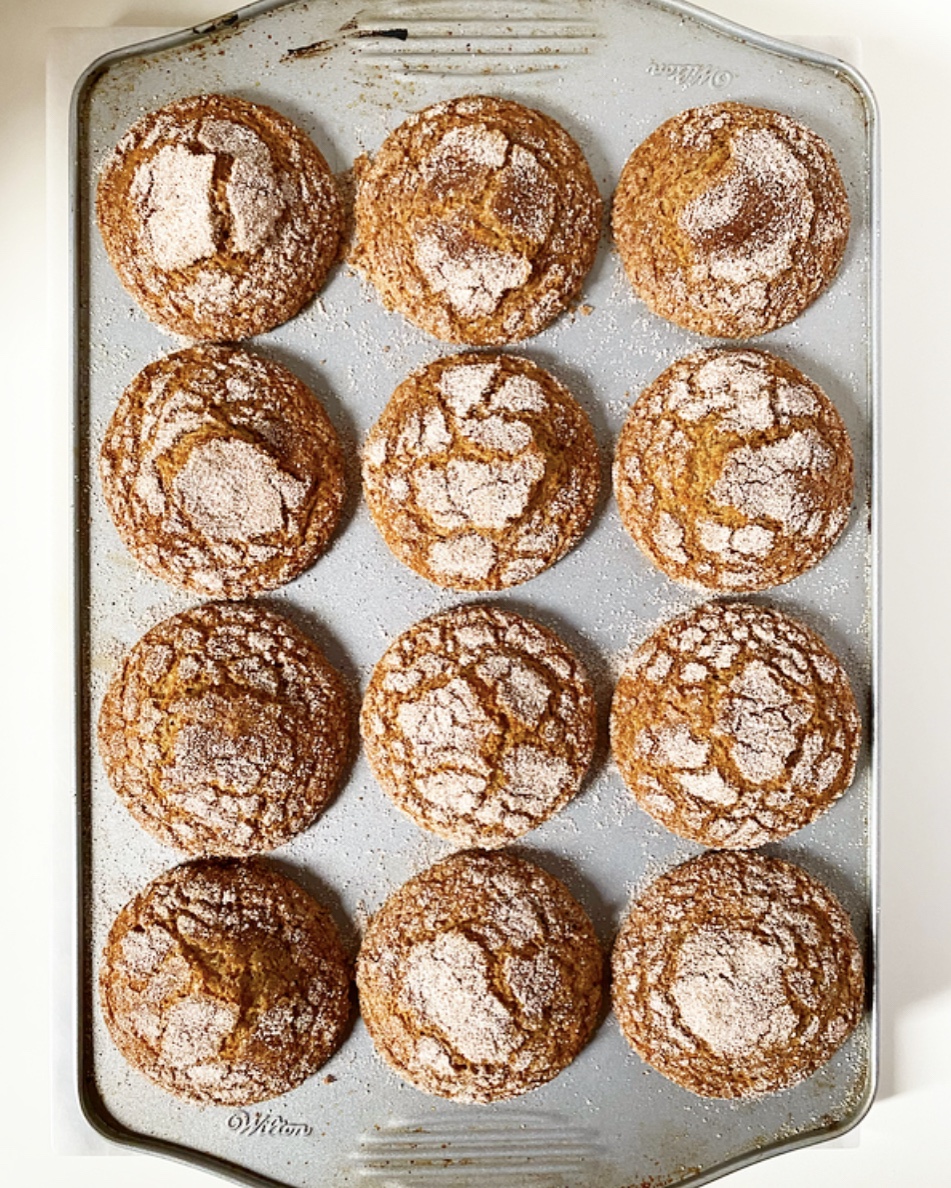 The batter is made with ingredients you likely already have at your disposal and comes together in a flash. Divide it into a muffin tin, filling each well up to the top, and then sprinkle on a thick (thick!) layer of sugar and pie spices before sliding them into the oven.