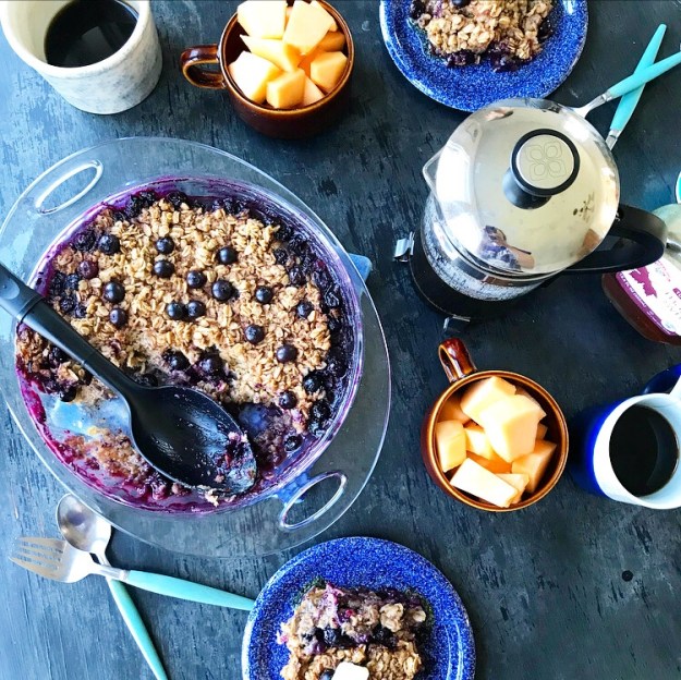 This oatmeal is super simple to make. With just a few minutes of prep-work and 40 minutes of bake time, you’ll be rewarded with a rich, cinnamon-spiked oatmeal that is positively bursting with blueberries.
