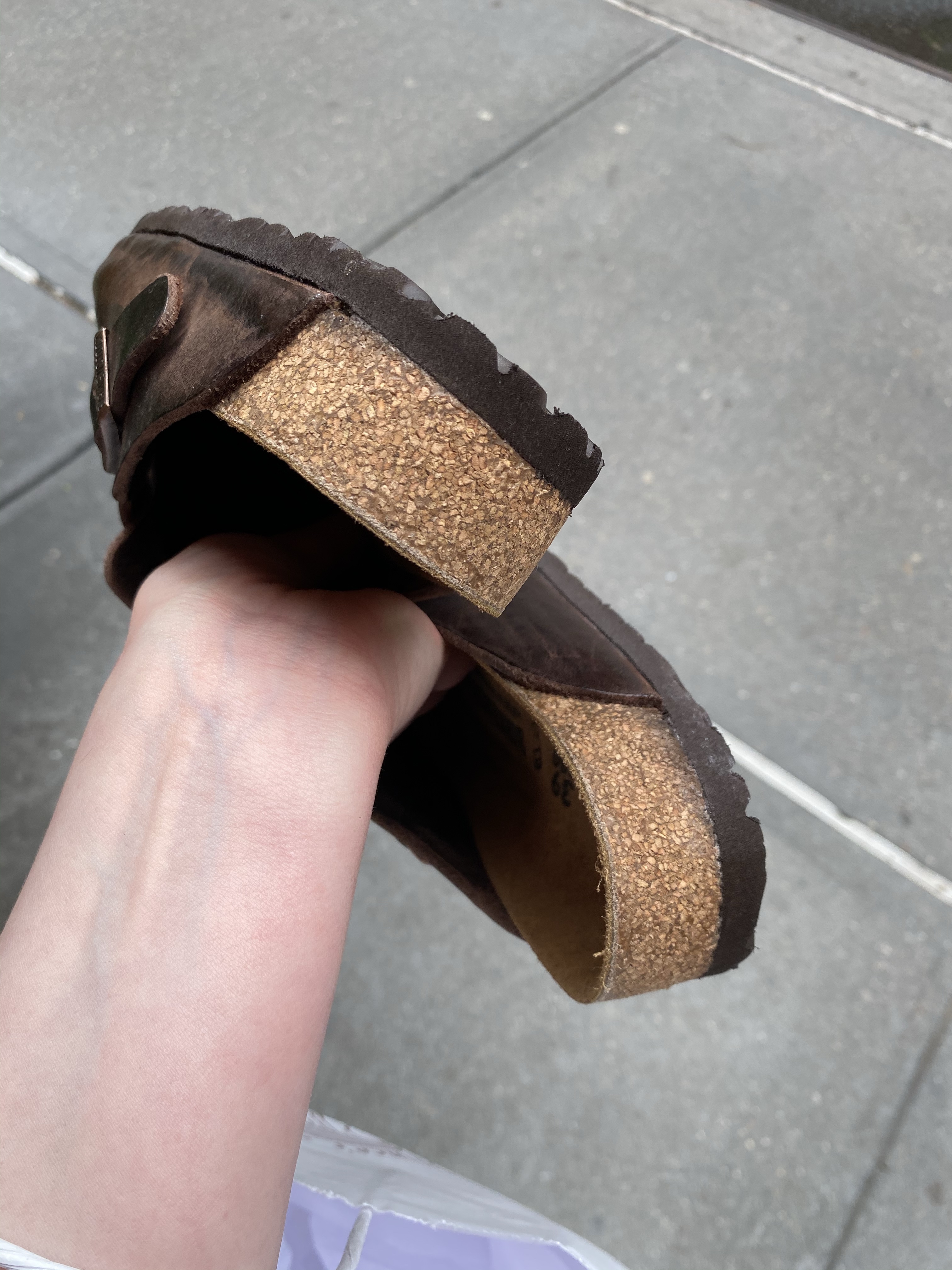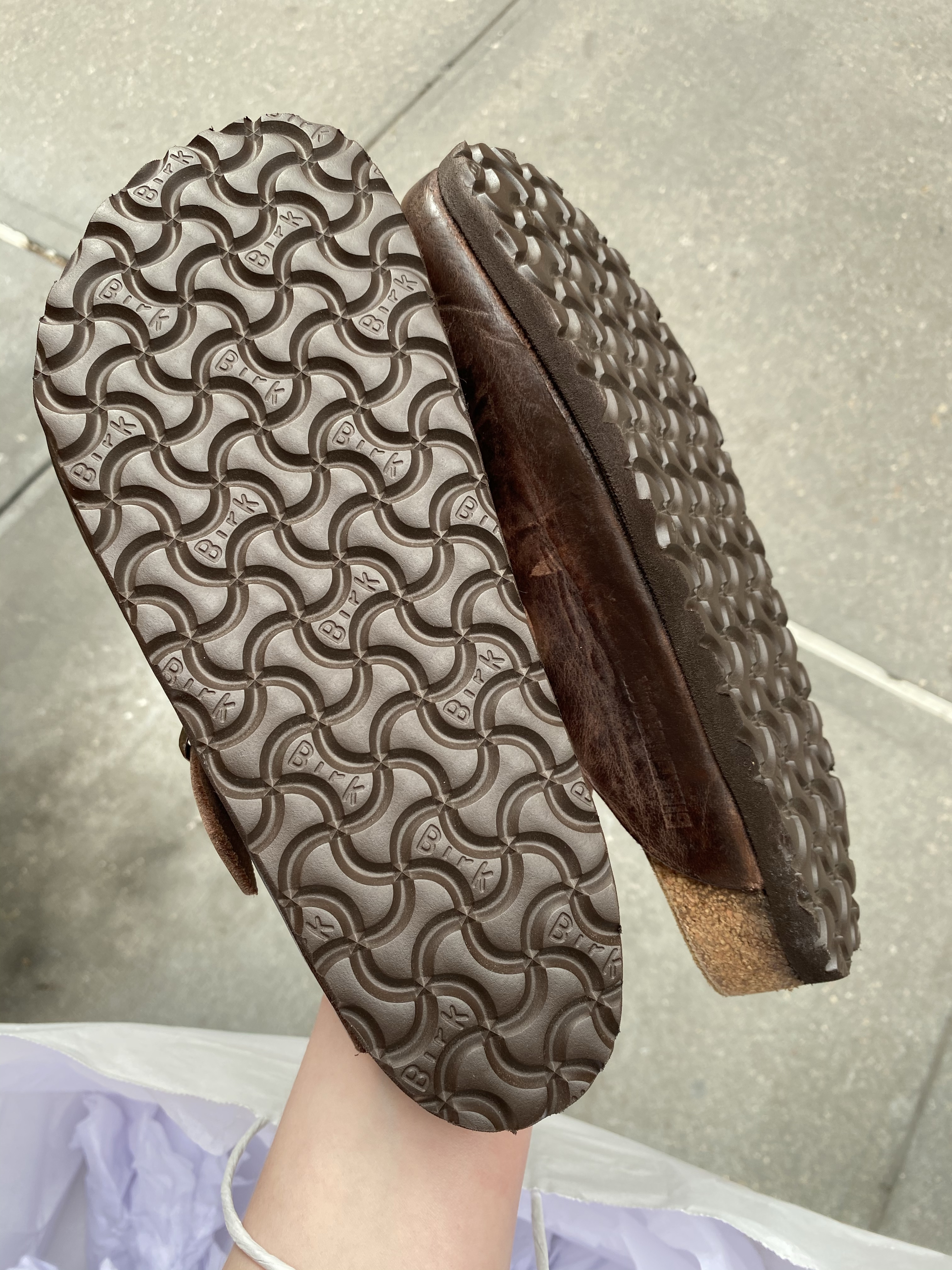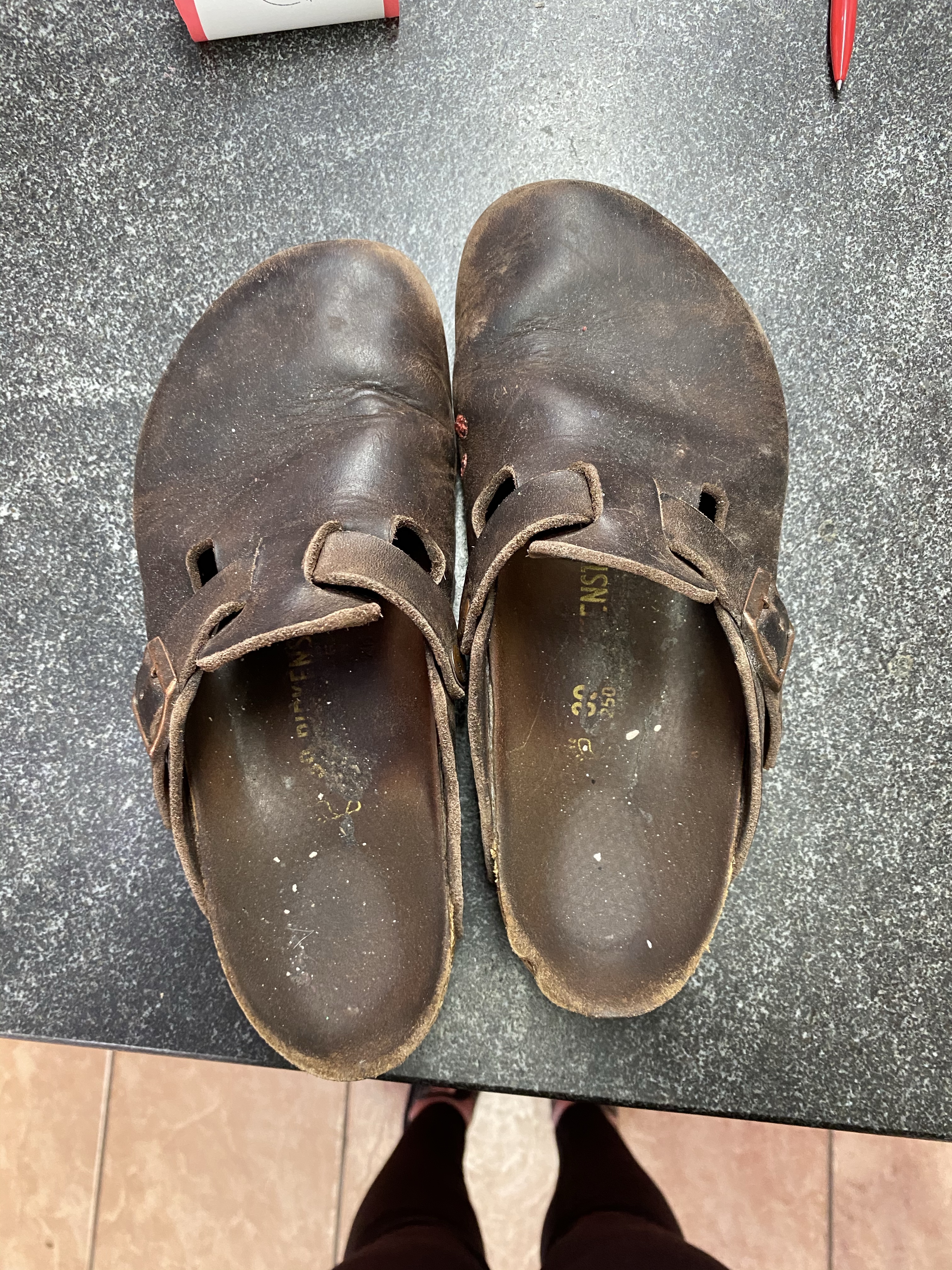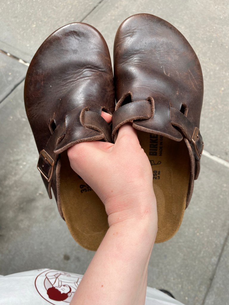 About six months ago, I started to really see the wear and tear on my beloved clogs. They continued to be comfortable and provide support to my (seriously screwed up) feet, no matter what I threw, splashed or dropped their way, but there was no denying they were dirty and busted. Their sheen had long since disappeared. Their tread had smoothed to a probably-dangerous point. They squeaked so loudly that for months they announced my presence to my roommate’s dog long before I arrived in his sight line. I went on the Birkenstock website in search of a new pair, but my fellow Birk enthusiasts had cleaned out the stock, so I waited. Even when the supply was replenished, I waited. After five years, and having given in and bought a pair of interim floral “Indoor Crocs,” I just wasn’t ready to let go.