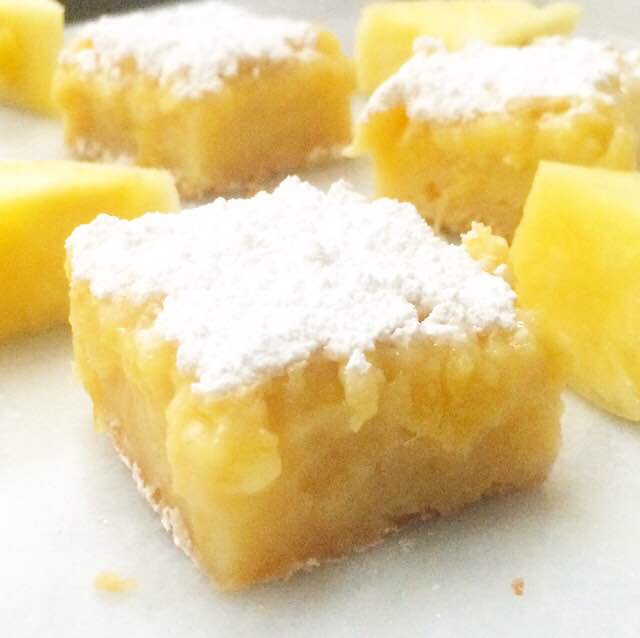 Spread batter in prepared pan and bake for 20-25 minutes, until a toothpick inserted in the center comes out mostly clean. Place the full pan on a rack and let cool completely. Chill bars for 30-60 minutes before slicing.