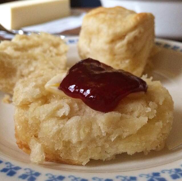 Brush biscuits with extra buttermilk. Bake biscuits for 12-14 minutes, until they have risen and are light golden brown. Let cool 5-10 minutes. Serve with butter and jam, honey, or gravy.