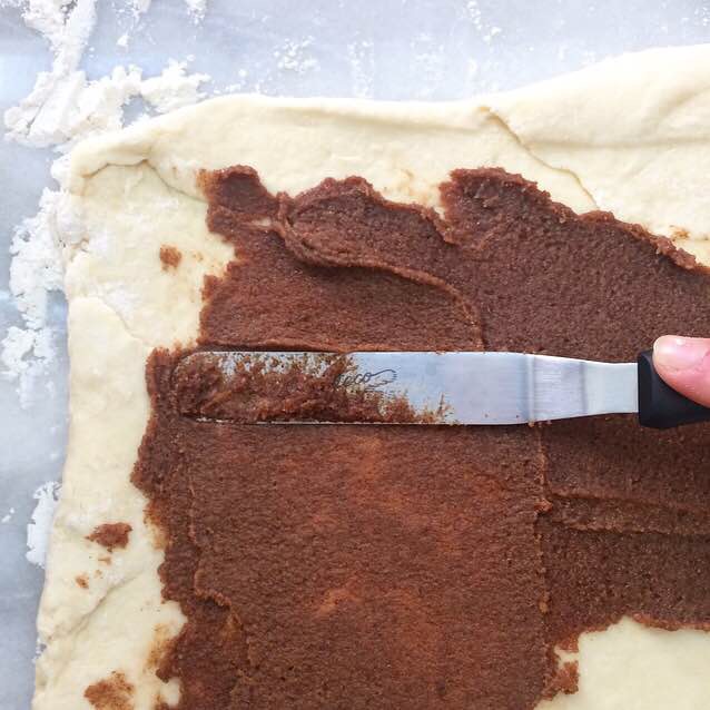 Make the filling. In a small mixing bowl, use a fork to whisk together butter, brown sugar, cinnamon, and salt, until it’s completely combined. Set aside.