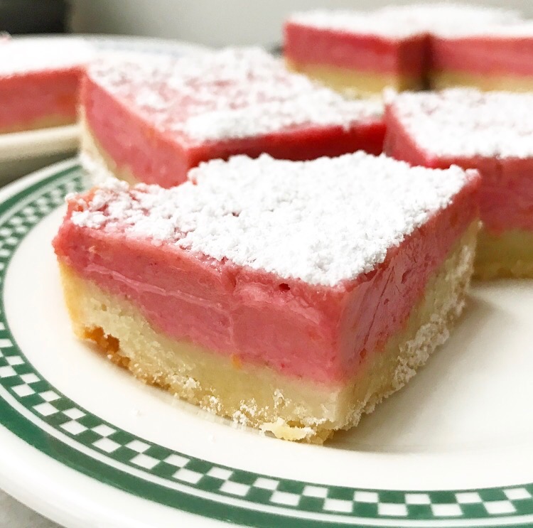 Pink Lemonade BarsThese bars bake up quickly, but must cool completely and be chilled before slicing–Pink Lemonade Bars are an excellent make-ahead dessert option. When you’re ready to serve, all you’ll need to do is slice them up and dust them with confectioner’s sugar. Your friends and family will love this twist on an old favorite.Pink Lemonade Bars