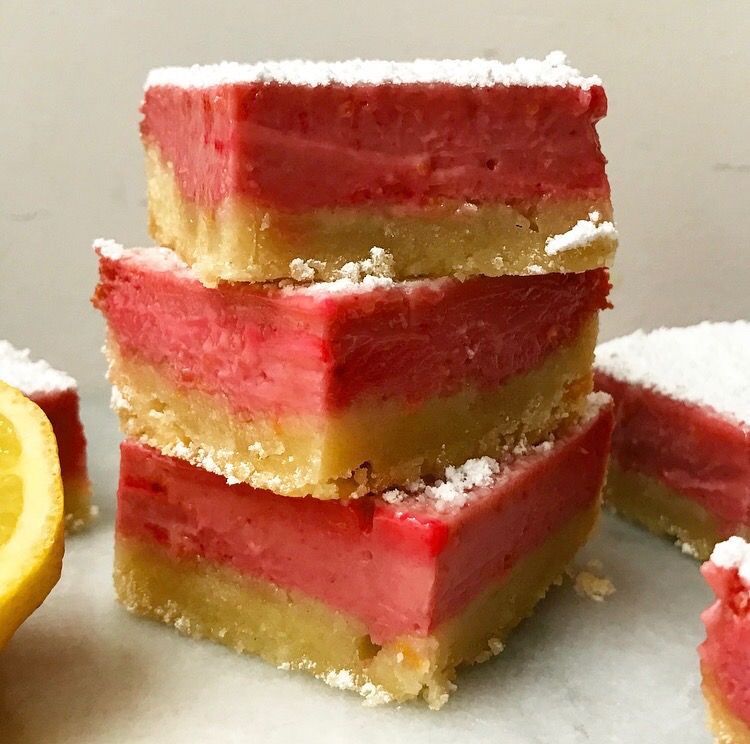 Pink Lemonade BarsPink Lemonade BarsPink Lemonade BarsPink Lemonade Bars get their color in two ways. The first is seedless raspberry purée, made from blitzing fresh raspberries in a blender or food processor and then pushing it through a sieve. I know that sounds tedious, but it takes all of five minutes. This will produce about 1/3 cup of purée, although you’ll only need to mix 1/4 cup into the filling.