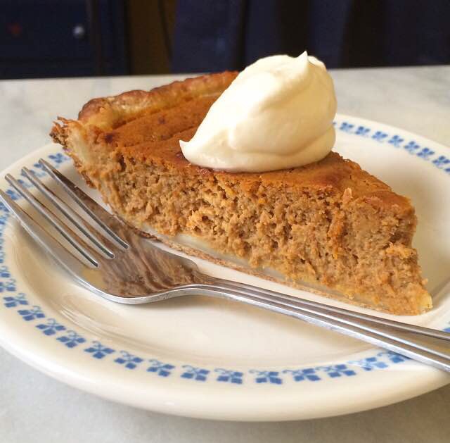 The filling is soft and sweet and perfectly spiced and the crust is mostly made of ground toasted pecans. GROUND TOASTED PECANS. And it’s a press-in crust—no rolling required. Does it get better than that?